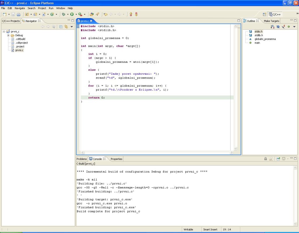 Celý postup, od vytvoření projektu, přes překlad až po spuštění, si ukážeme na jednoduchém programu typu