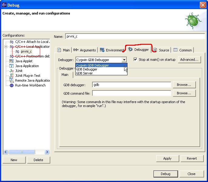 instalace) to bude opět GDB Debugger. (Pro nástroj Cygwin by to byla volba