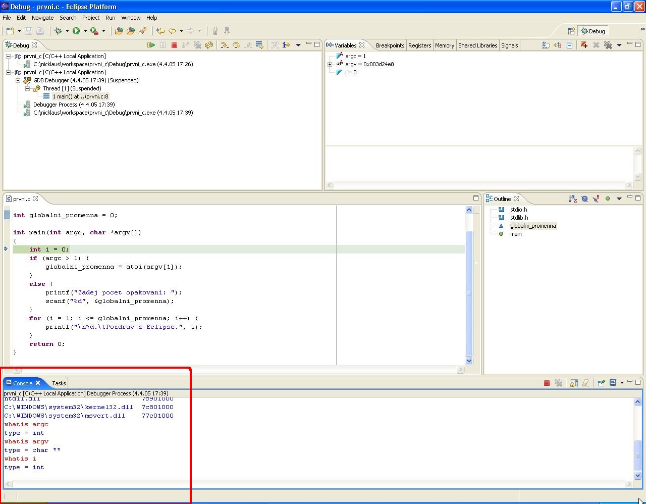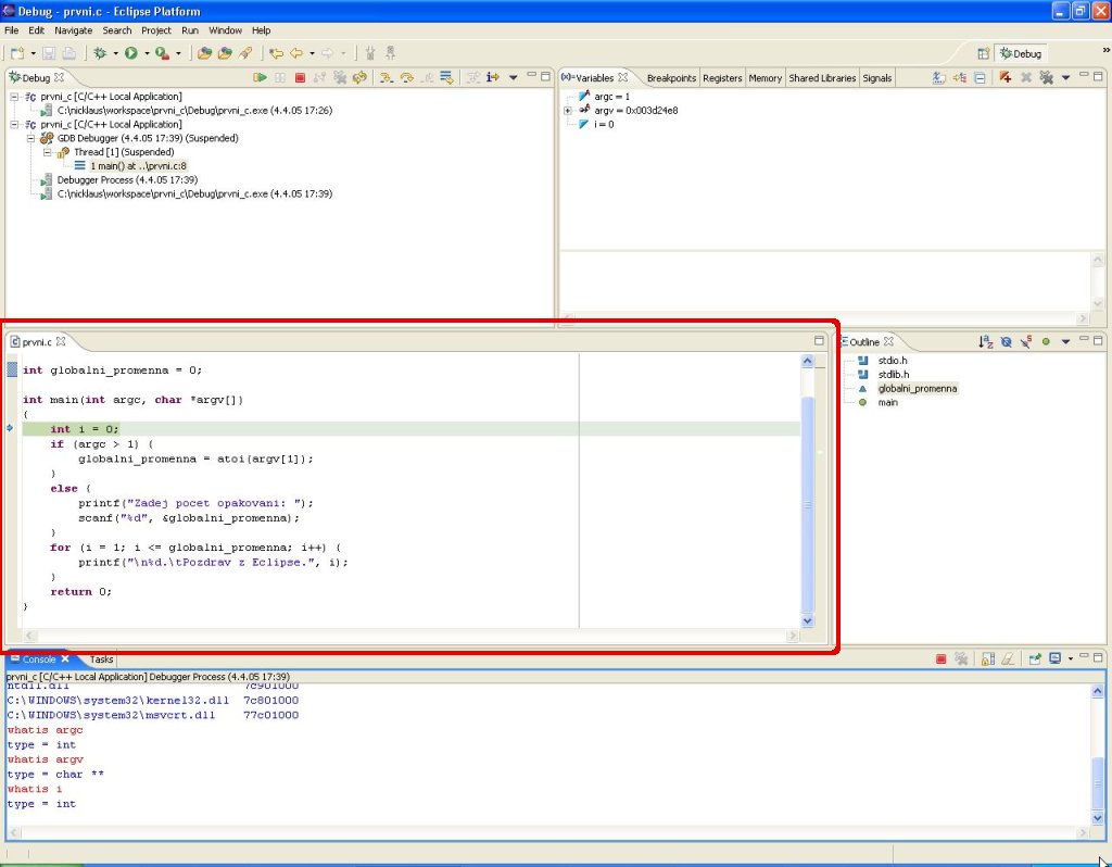 Hned na začátku jedna trochu nepříjemná zpráva. Debugging s CDT 2.1 pod Eclipse 3.1 nefunguje. V nadcházející verzi CDT 2.1.1 bude tento bug opraven. Zatím však, chcete-li využívat CDT plně, včetně debuggeru, je nutné mít verzi Eclipse 3.0.x.